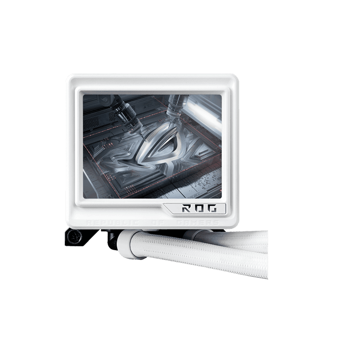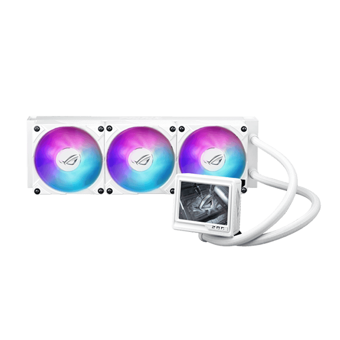 ROG Ryujin III 360 ARGB Extreme all-in-one liquid CPU cooler with Asetek’s Emma Gen8 V2 pump; thickened magnetic ROG ARGB fans for high airflow and static pressure with noise optimization; 3.5″ LCD for hardware monitoring & custom GIFs