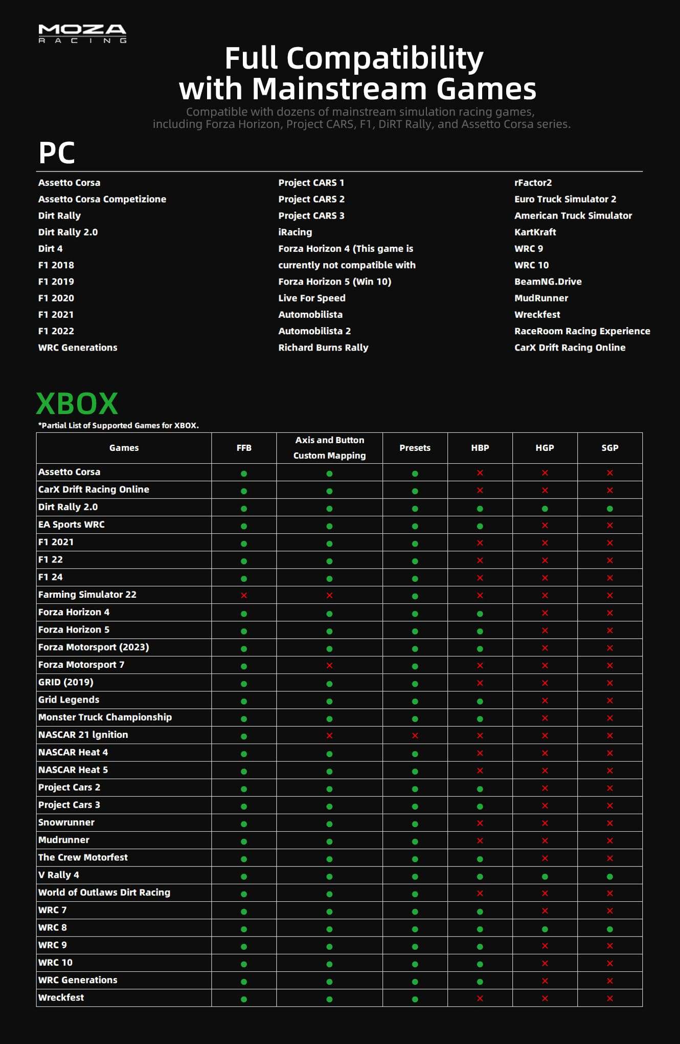 - Full Compatibility: One Wheel, Double the Thrills. Support Windows 10/11 PC, Xbox Series X|S and Xbox One, easily switch between PC & Xbox. Compatible with dozens of mainstream simulation racing games. A perfect choice for console and PC gamers alike