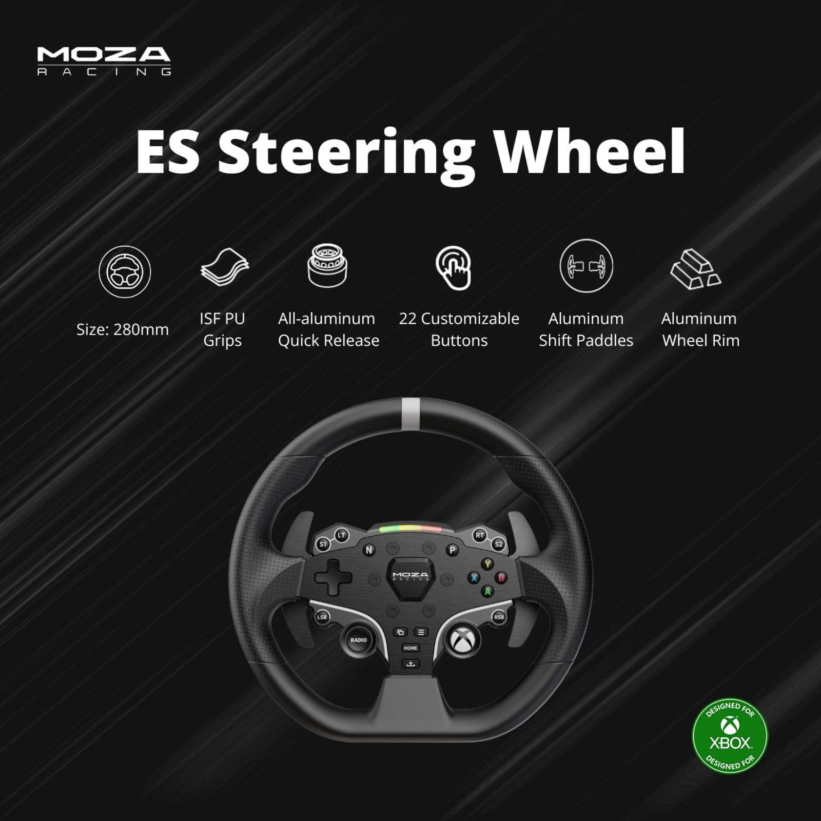 - ES Steering Wheel:This 11-inch round gaming wheel with durable ISF PU grips aluminum alloy rim, 22 customizable buttons for maximum immersion and extended use. The racing-level Quick Release system allows for effortless wheel rims changing.MOZA’s signature RGB sequential flow shift light indicator ensures every shift is just right,Combining Xbox console performance with MOZA Racing direct drive technology for the most immersive racing experience.