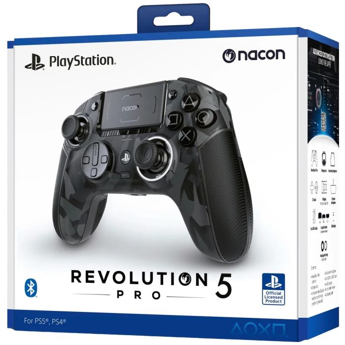 With REVOLUTION 5 PRO you can play longer, better and faster. Discover the 6th generation official Pro controller expertly designed by NACON. Revolution 5 Pro is a premium asymmetric controller and compatible with PlayStation 5, PlayStation 4 and PC, it will enhance your real gaming skills. Key Features: Hall Effect Joysticks and Trigger Lock System: Hall Effect technology greatly reduces joystick “drifting problem” thanks to its magnetic elements that minimize the wear of the joystick components. The Hall Effect L2 and R2 triggers have two locking positions that allow you to quickly and easily set the trigger length, and you can quickly adjust them depending on the game. More than 60+ customization options: Revolution 5 pro includes more than 60 customization options, both through replaceable physical components and a separate app. Customizable joysticks. Change the joystick to suit you. Choose from three different silicone joystick heads. A flat, concave and longer option is included. Interchangeable D-pad Choose from two D-pad options, the original 4-way or the new improved 8-way made of improved silicone membrane material. Find the perfect weight for your controller The package includes a weight set, so you can find the best weight for you. Choose either 10, 14 or 16g/half. Changeable key mappings The four function keys on the back of the controller can be mapped according to your wishes. Separate app and multi-function button Customize joystick response curves, button mapping, lights, sound and more with the PC app or the new multi-function button Premium materials The Revolution 5 Pro features premium grips, premium soft coating, glossy finish, high quality rubber tips and L2 and R2 grip patterns , which give you a better feeling and comfort. Combined with over 10 hours of battery life, this ensures you’ll always stay in the game.