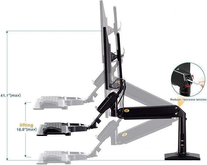 - The height-adjustable display and keyboard moves easily and simultaneously lift for proper height, allowing you to easily sit down or stand up on demand as your choice.