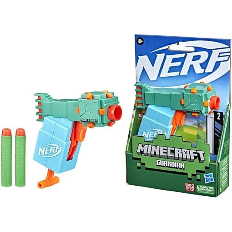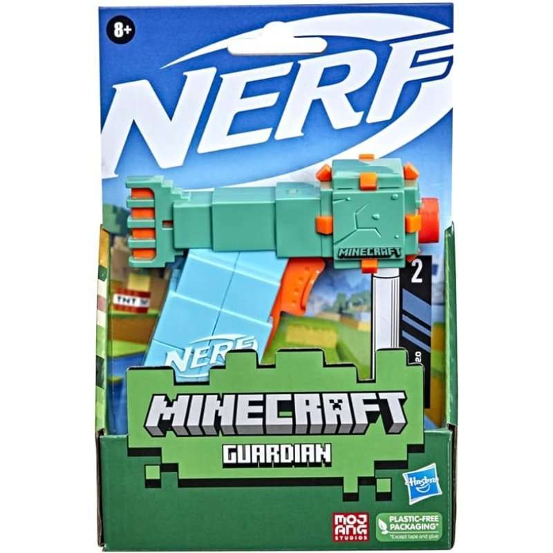 - NERF MICROSHOTS MINECRAFT GUARDIAN BLASTER: This dart-firing Nerf Minecraft blaster takes its inspiration from the Minecraft Guardian mob, capturing the look of the entity in the video game franchise