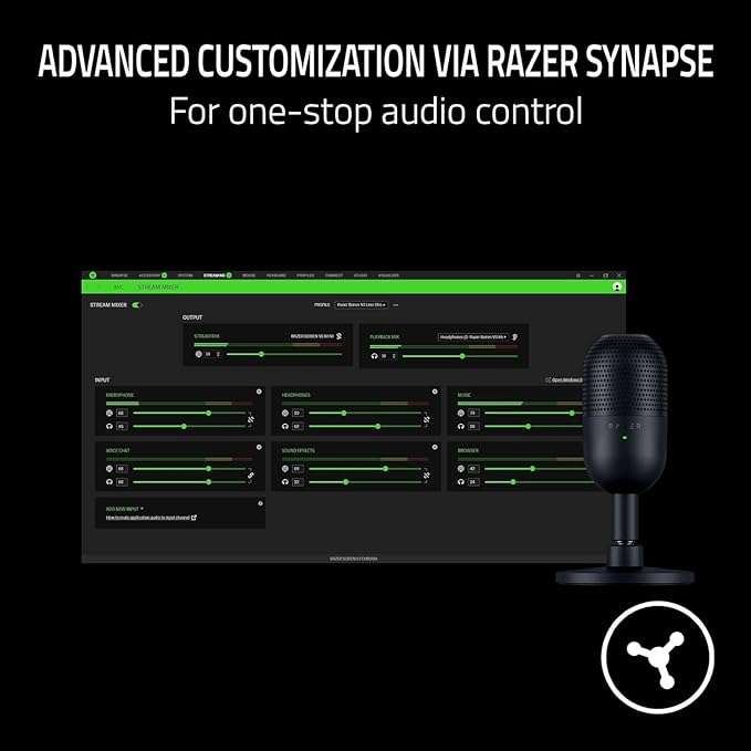Razer Seiren V3 Mini USB Microphone, Condenser Mic, Supercardioid Pickup Pattern, Tap-to-Mute Sensor with LED Indicator, Shock Absorber, Ultra Compact, PC, Discord, OBS Studio, XSplit – Black