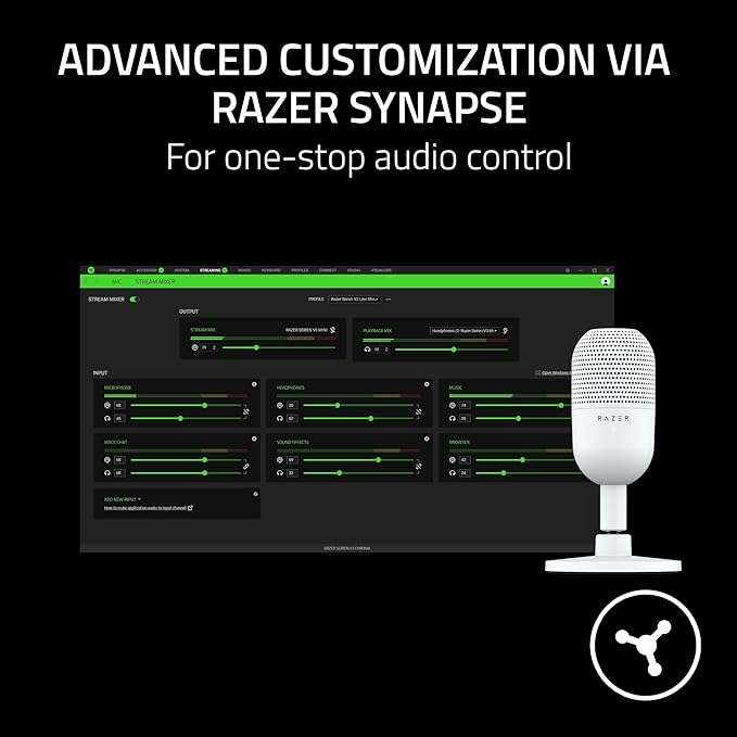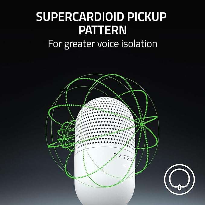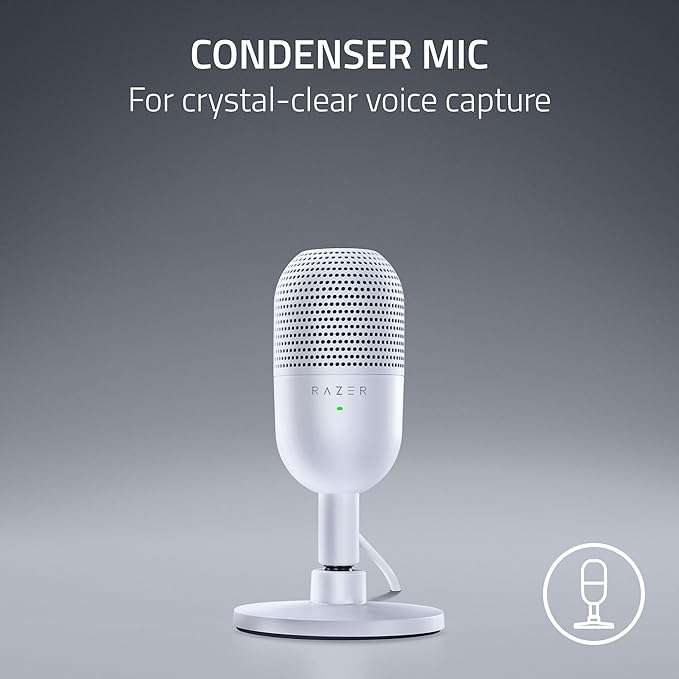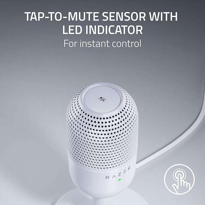 Razer Seiren V3 Mini USB Microphone, Condenser Mic, Supercardioid Pickup Pattern, Tap-to-Mute Sensor with LED Indicator, Shock Absorber, Ultra Compact, PC, Discord, OBS Studio, XSplit – White
