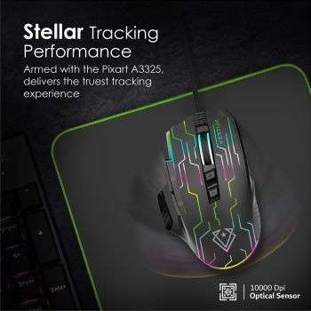 Give yourself a competitive edge as the gaming mouse allows for the smoothest, reliable tracking experience with impeccable accuracy. Kryptonite boasts 6-DPI settings up to 10000 DPI for flawless speed changes in decisive gaming moments. The high-precision mouse features an ergonomic design with 9-programmable buttons allowing you to customize the mouse to perform at your highest level while gaming, via the specialized app. Cease the battle with Kryptonite.
